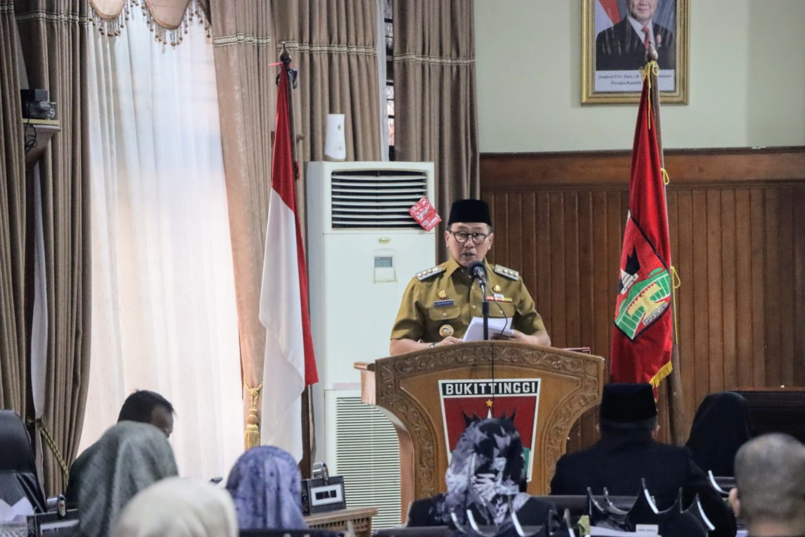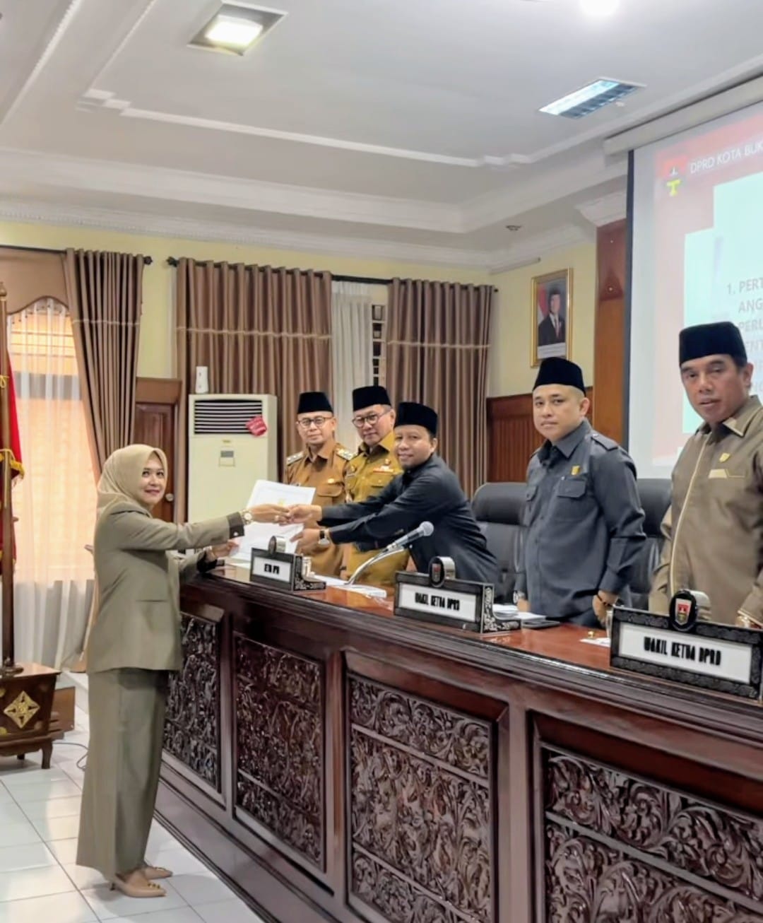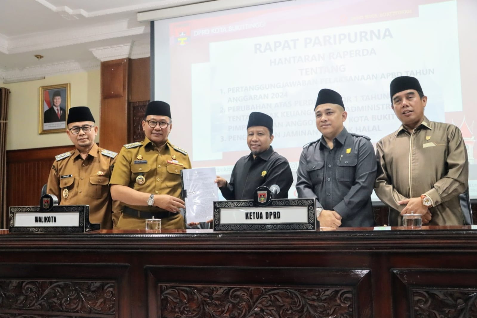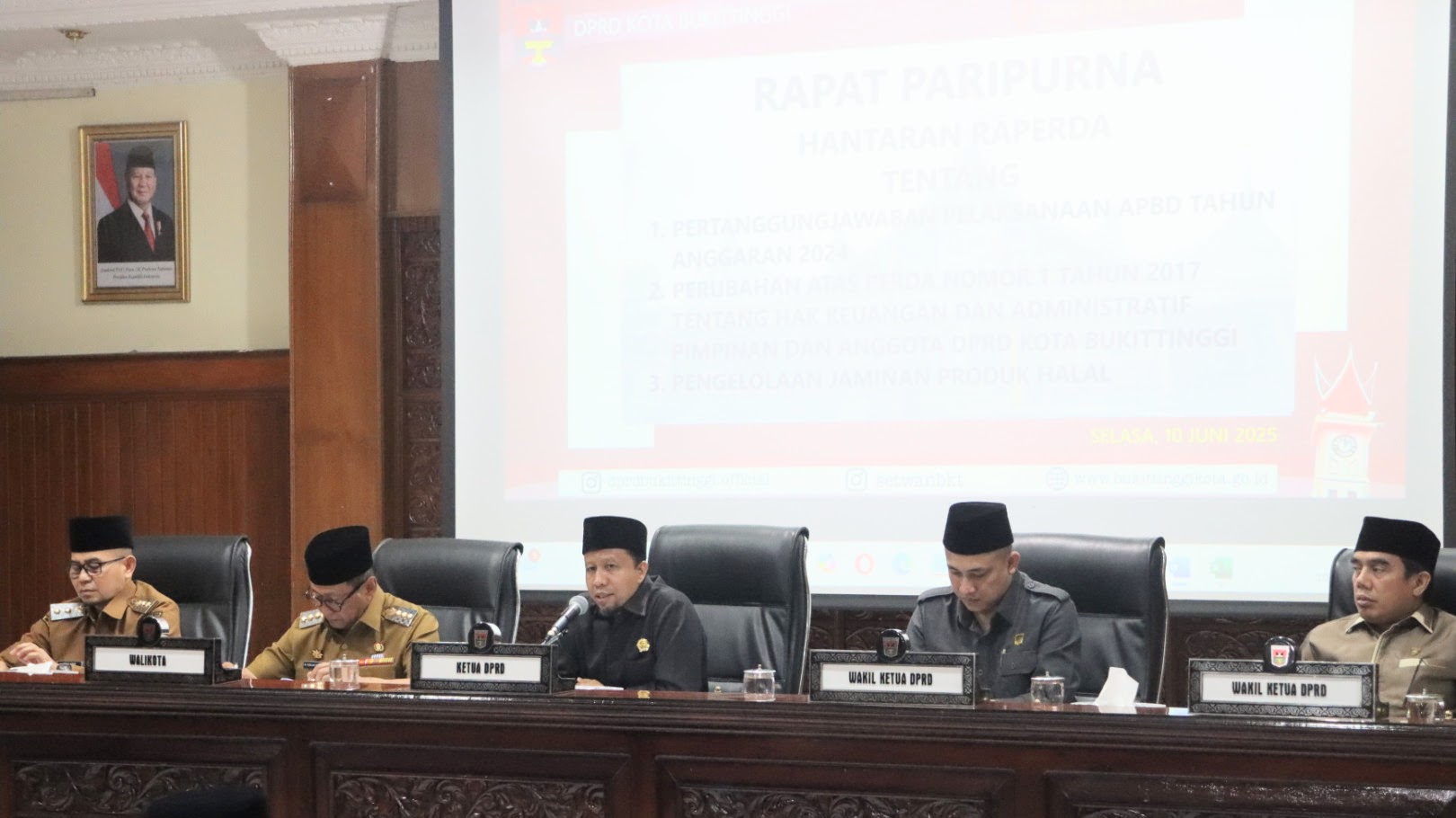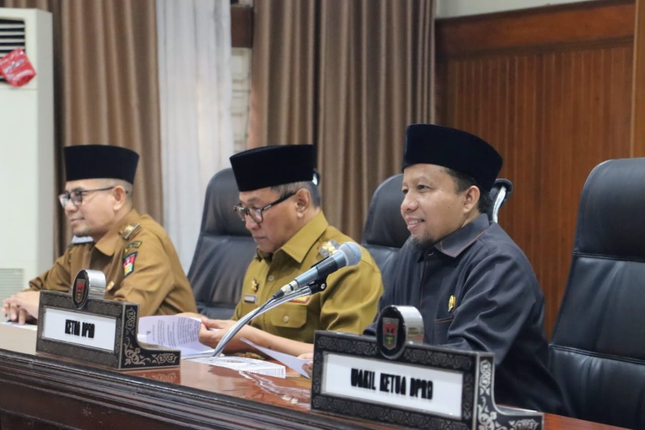 Humas DPRD- Dewan Perwakilan Rakyat Daerah (DPRD) Kota Bukittinggi, Selasa (10/6/2025) di ruang rapat utama gedung DPRD menggelar Rapat Paripurna dengan agenda Hantaran Rancangan Peraturan Daerah Kota Bukittinggi tentang pertanggungjawaban pelaksanaan APBD tahun anggaran 2024, Perubahan atas Peraturan Daerah Nomor 1 Tahun 2017 tentang Hak Keuangan dan Administratif Pimpinan dan Anggota DPRD Kota Bukittinggi serta Raperda tentang Pengelolaan Jaminan Produk Halal.