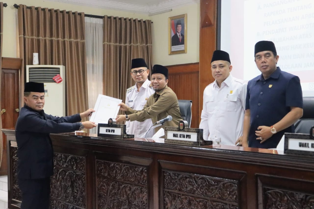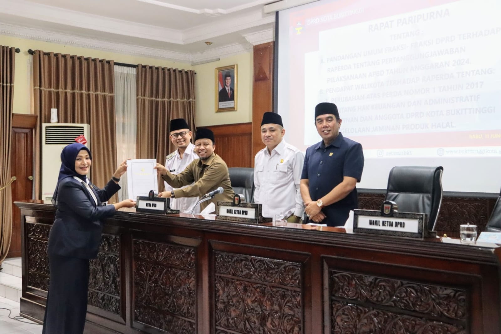 Humas DPRD- Ketua DPRD Kota Bukittinggi H.Syaiful Efendi, Lc.MA membuka Rapat Paripurna hari kedua, Rabu (11/6/2025) di ruang rapat utama gedung DPRD Kota Bukittinggi dengan agenda Pandangan Umum Fraksi-fraksi terhadap Ranperda tentang pertanggungjawaban pelaksanaan APBD tahun anggaran 2024 dan Pendapat Wali Kota terhadap Ranperda tentang Perubahan Atas Perda Nomor 1 Tahun 2017 tentang Hak Keuangan dan Administrasi Pimpinan dan Anggota DPRD Kota Bukittinggi serta Pengelolaan Jaminan Produk halal.