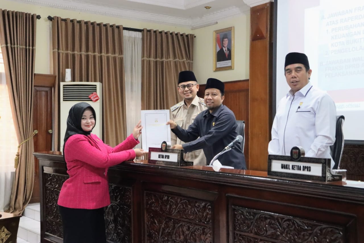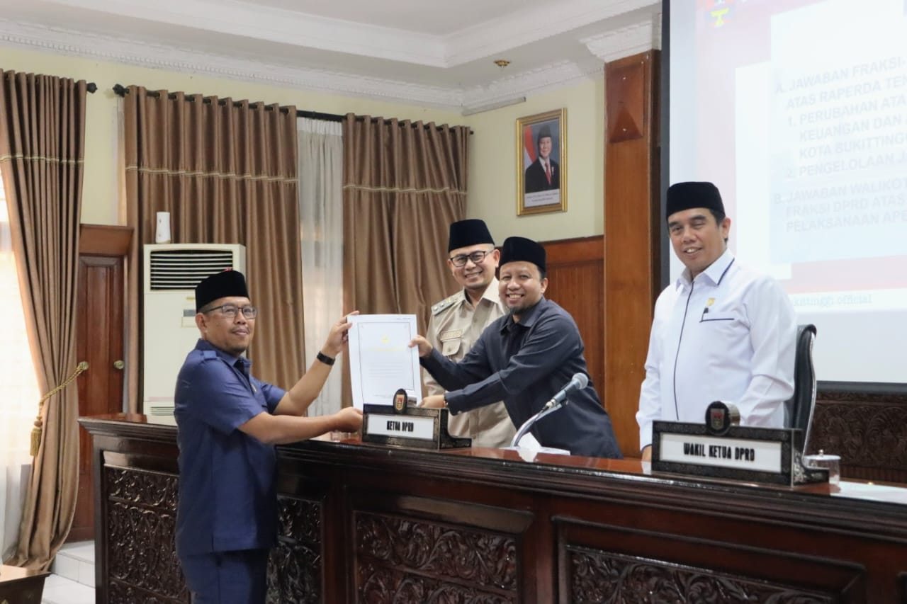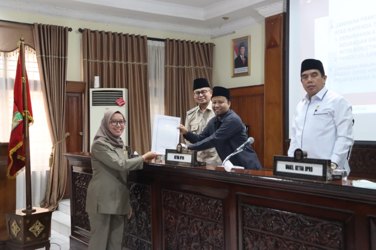 Pada kesempatan itu, Wakil Wali Kota Bukittinggi, Ibnu Asis memberikan jawaban dan tanggapan terhadap pandangan umum fraksi DPRD atas Ranperda tentang Pertanggungjawaban Pelaksanaan APBD Tahun Anggaran 2024.