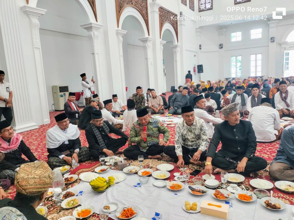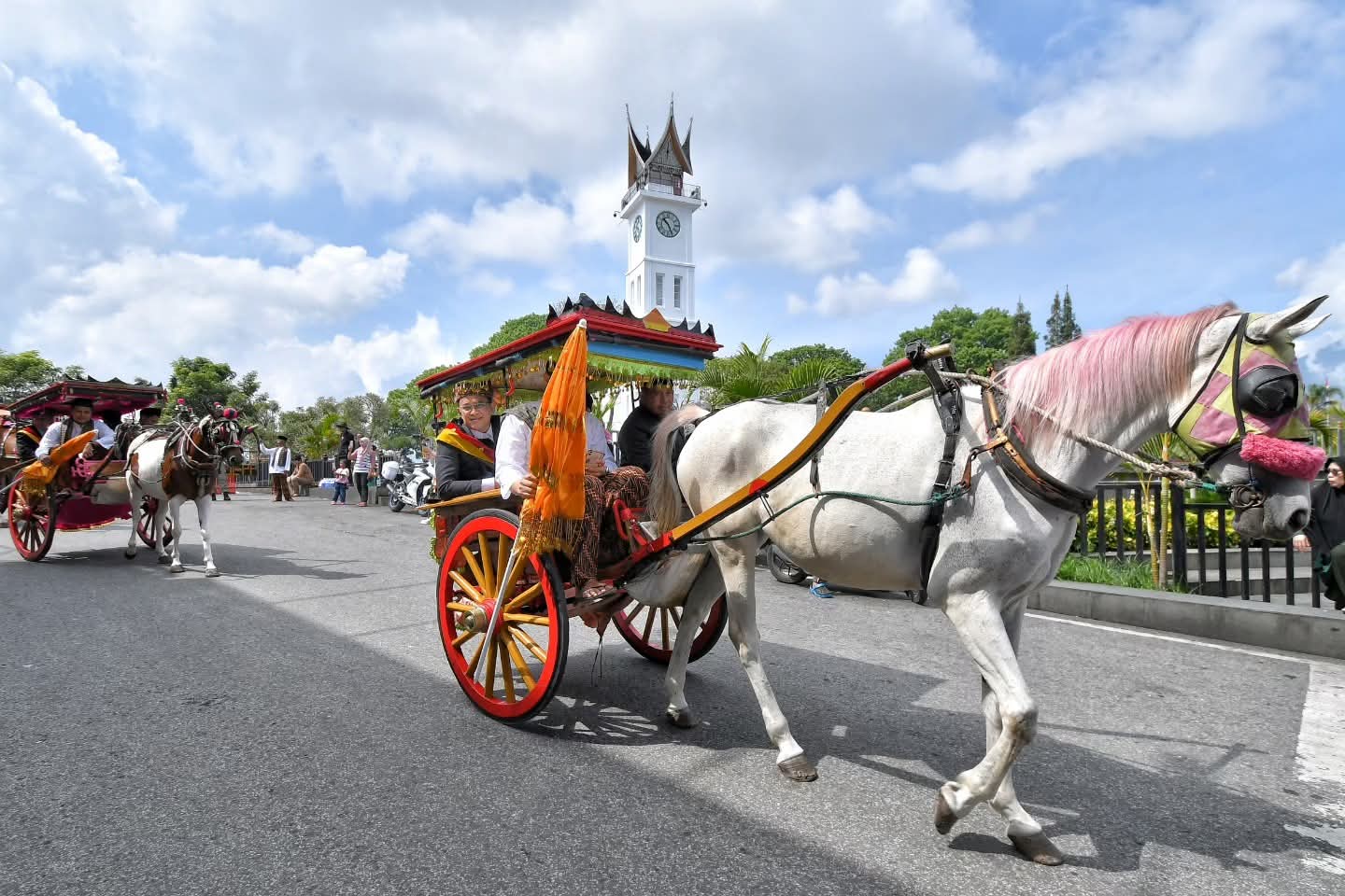HUMAS DPRD– Kota Bukittinggi menjadi beda dari hari-hari biasa, karena di akhir pekan, tampak terlihat kaum Ibu dengan berpakaian khas Minangkabau dan kaum Bapak dengan Batik serta Taluak Balango mengikuti arak-arakan dalam kota, begitu juga Bendi dan kendaraan angkutan umum (IKABE) berbendera Marawa di sepanjang jalan di Kota Bukittinggi. Sangat meriah Kota Bukittinggi, Sabtu (12/6/2025).