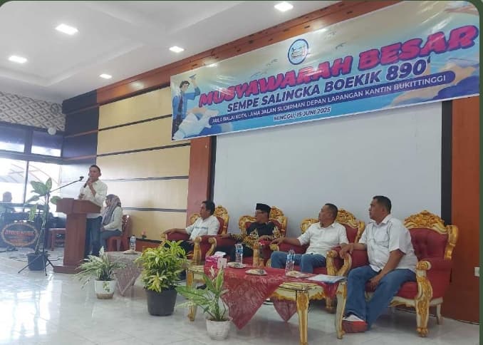 HUMAS DPRD – Sempe (SMP) Salingka Bukik (SSB) angkatan 1989 dan 1990 menggelar Musyawarah Besar (Mubes), Minggu (15/6/2025) di Aula Badan Keuangan (Balai Kota Lama) Kota Bukittinggi jalan Jenderal Sudirman tepatnya depan lapangan Wirabraja 032 (lapangan kantin). Kegiatan mubes ini dalam rangka mempererat silaturahmi dan menyusun program ke depan sekaligus pelantikan dan pengukuhan Ketua SSB Angkatan 1989 dan 1990.
