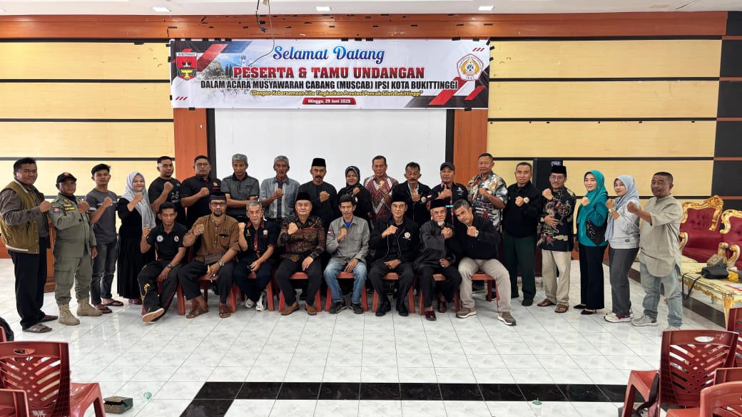 Humas DPRD- Ikatan Pencak Silat Indonesia (IPSI) Kota Bukittinggi gelar Musyawarah Cabang (Muscab), Minggu (29/6/2025) di Aula Kantor Badan Keuangan Kota Bukittinggi dihadiri Anggota DPRD Kota Bukittinggi, Yerry Amiruddin, SE, Ketua KONI Kota Bukittinggi, Hendra Hendarmin, Sekretaris KONI, Hamdan HS, S.Ds, Ketua IPSI Kota Bukittinggi periode 2020-2024, Herman Syofyan,SE yang juga mantan Ketua DPRD Kota Bukittinggi, Tuo-tuo silek juga Perwakilan guru-guru silek dibawah naungan IPSI Kota Bukittinggi dan Ketua Panitia Muscab serta jajaran.