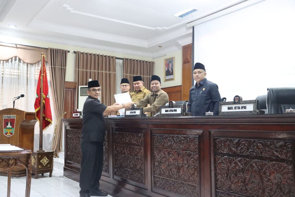 Ketua DPRD Bukitinggi, H. Syaiful Efendi, Lc., MA menjelaskan, setelah melakukan pembahasan, seluruh fraksi di DPRD Bukittinggi dapat menyetujui pertanggungjawaban APBD tahun 2024, yang telah dihantarkan sebelumnya. Kemudian, Wako juga menghantarkan KUPA- PPAS 2025, serta Raperda RPJMD 2025-2029.