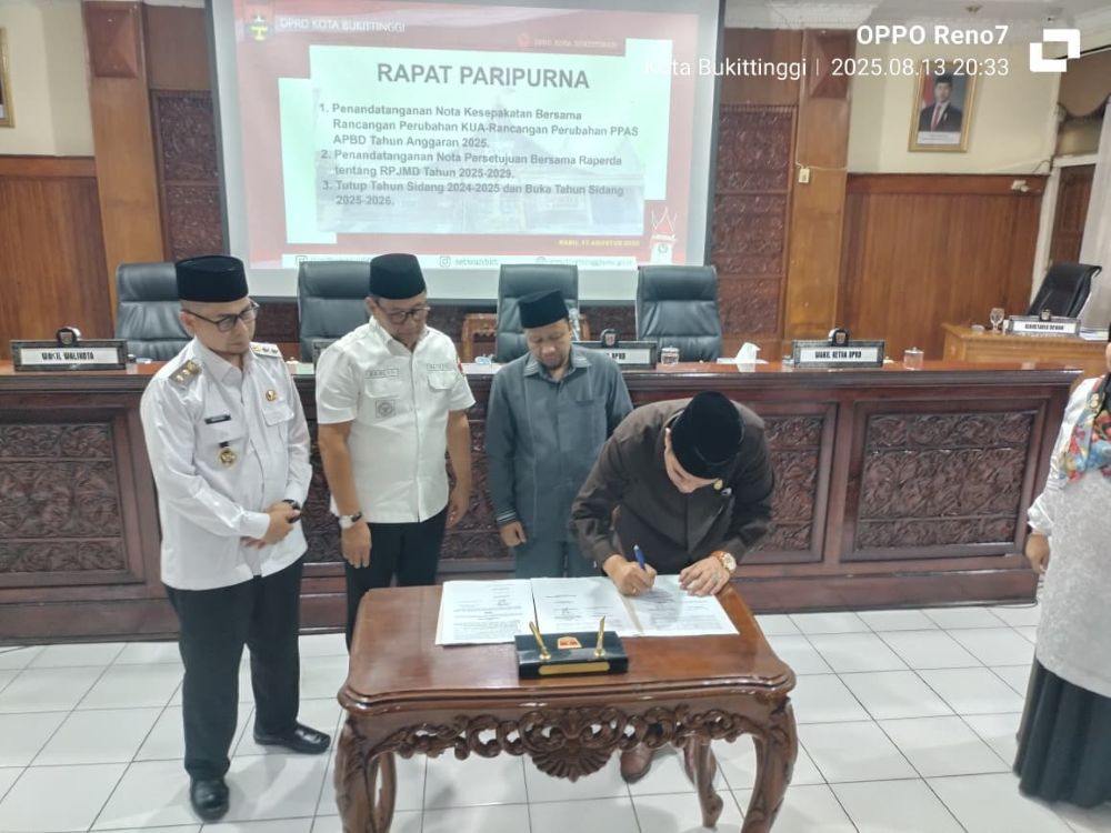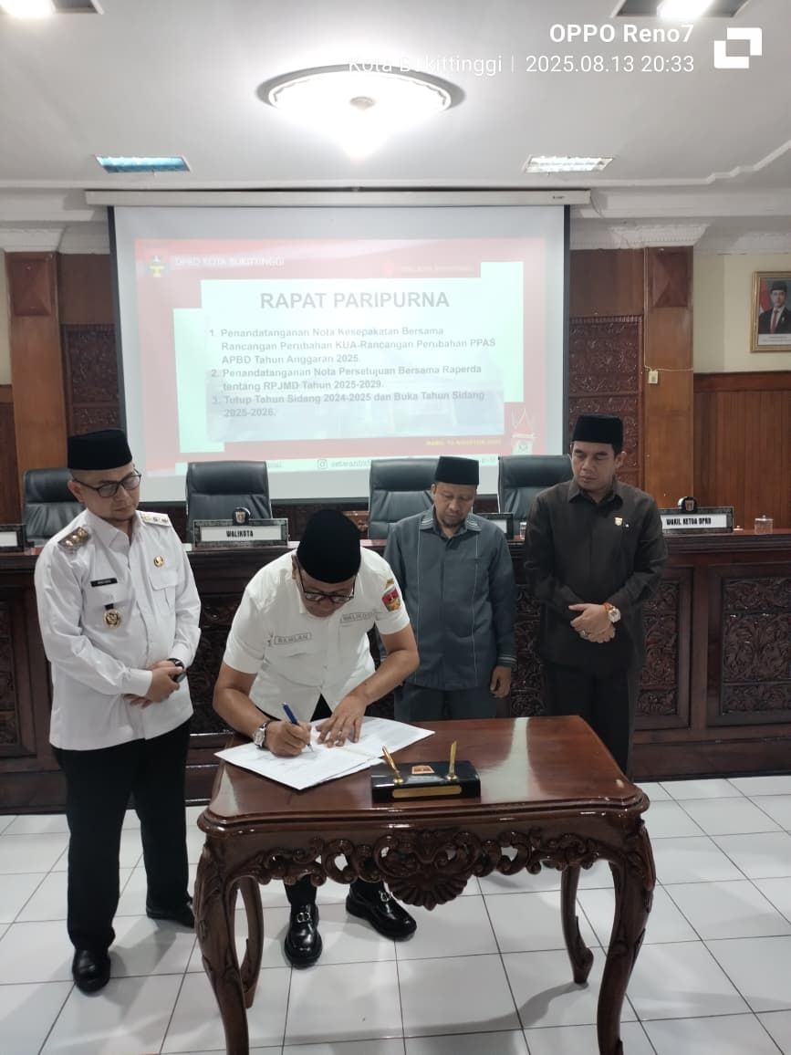 RAPAT PARIPURNA DPRD KOTA BUKITTINGGI: PENANDATANGANAN NOTA KESEPAKATAN DAN PENUTUPAN TAHUN SIDANG 2024–2025, Rabu, 13 Agustus 2025.