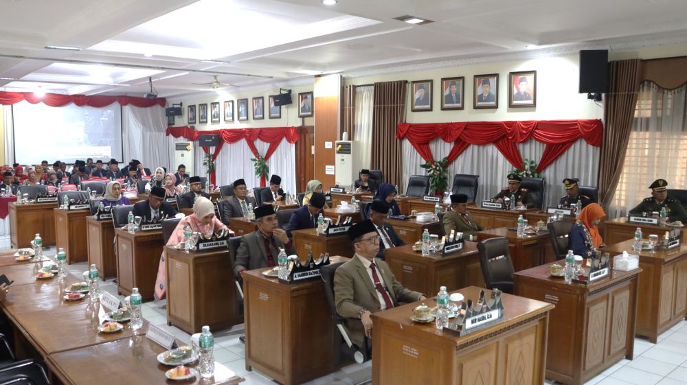 Rapat Paripurna dipimpin langsung Ketua DPRD Kota Bukittinggi, H. Syaiful Efendi, Lc., M.A., dihadiri Anggota DPRD dan Wali Kota serta Wakil Wali Kota Bukittinggi, unsur Forkopimda, Ketua Pengadilan Negeri, Ketua Pengadilan Agama, Sekretaris Daerah, Sekretaris DPRD serta jajaran, OPD se Kota Bukittinggi, camat, lurah, pimpinan perbankan daerah, Niniak Mamak, Bundo Kanduang, hingga insan pers baik cetak maupun online.