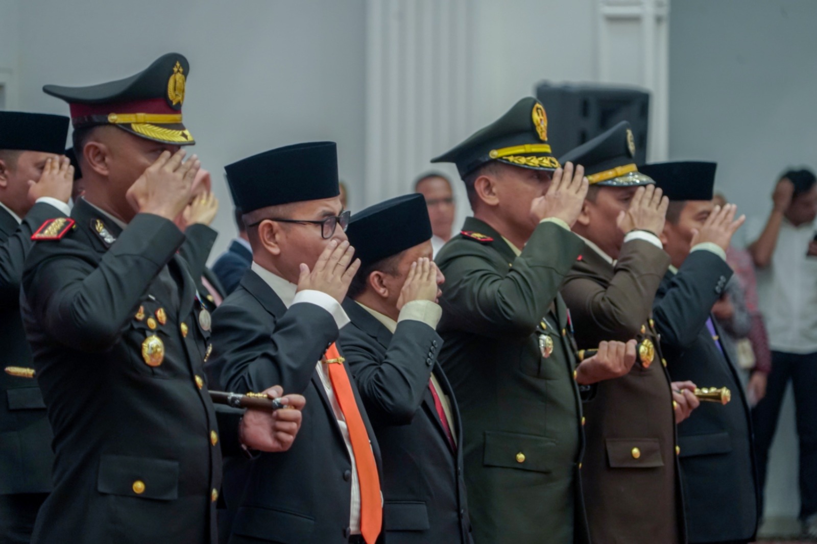 Momen sakral dilanjutkan dengan penyematan lencana secara simbolis oleh Wali Kota kepada perwakilan anggota Paskibraka, disaksikan oleh para pejabat dan undangan yang hadir.