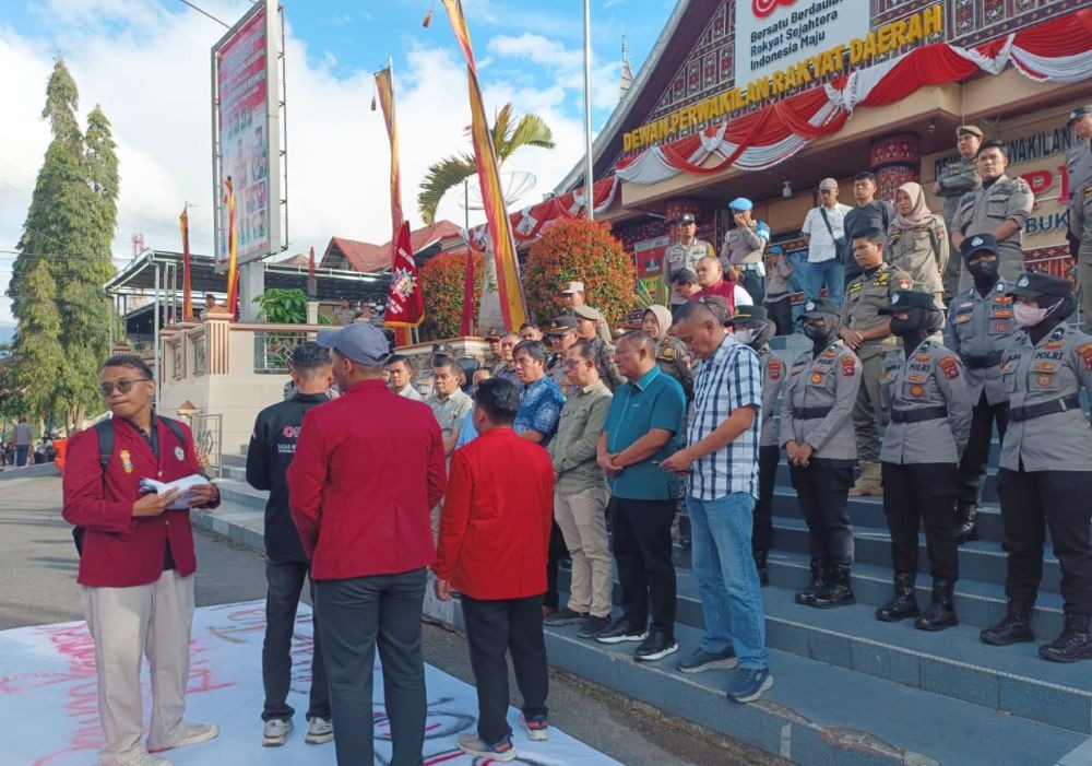 sesi penyerahan aspirasi secara resmi dari perwakilan mahasiswa kepada pimpinan DPRD Kota Bukittinggi, yang kemudian dilanjutkan dengan