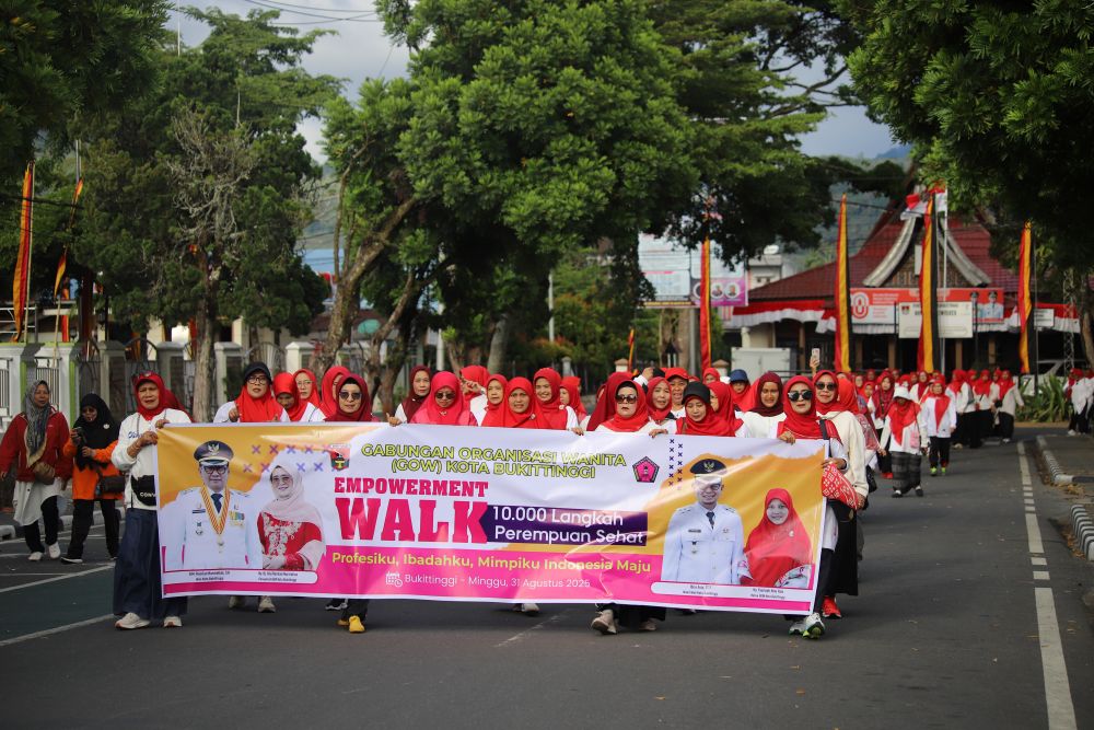 Humas DPRD – Ribuan perempuan dari berbagai organisasi wanita di Kota Bukittinggi tumpah ruah mengikuti kegiatan jalan sehat bertajuk “Empowerment Walk: 10.000 Langkah Perempuan Sehat”, Minggu (31/8/2025).