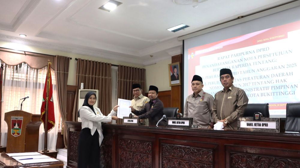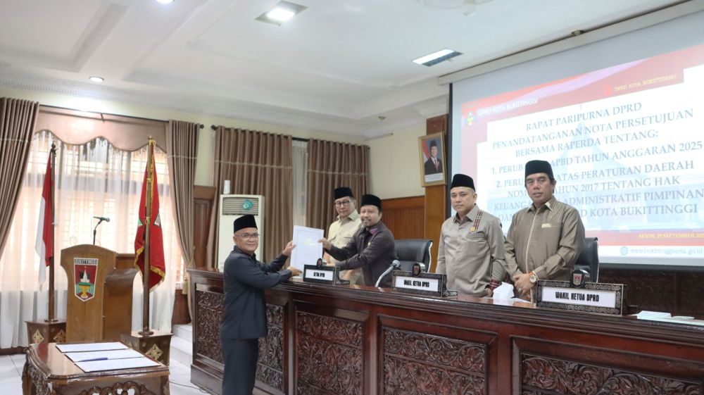 DPRD Kota Bukittinggi Gelar Rapat Paripurna Penandatanganan Nota Persetujuan Bersama Perubahan APBD 2025 dan Perubahan Perda Nomor 1 Tahun 2017, Senin, 29 September 2025.