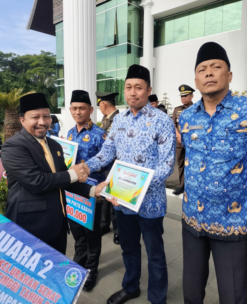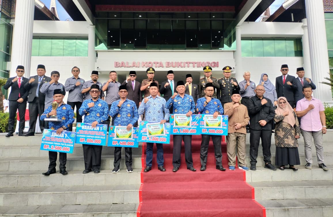 Setelah upacara selesai, kegiatan dilanjutkan dengan penyerahan Sertifikat dan Hadiah Penilaian Kelurahan Sehat se-Kota Bukittinggi Tahun 2025. Penyerahan dilakukan secara langsung oleh Ketua DPRD Kota Bukittinggi, Walikota Bukittinggi, unsur Forkopimda, serta Sekretaris Daerah Kota Bukittinggi kepada kelurahan yang berprestasi.
