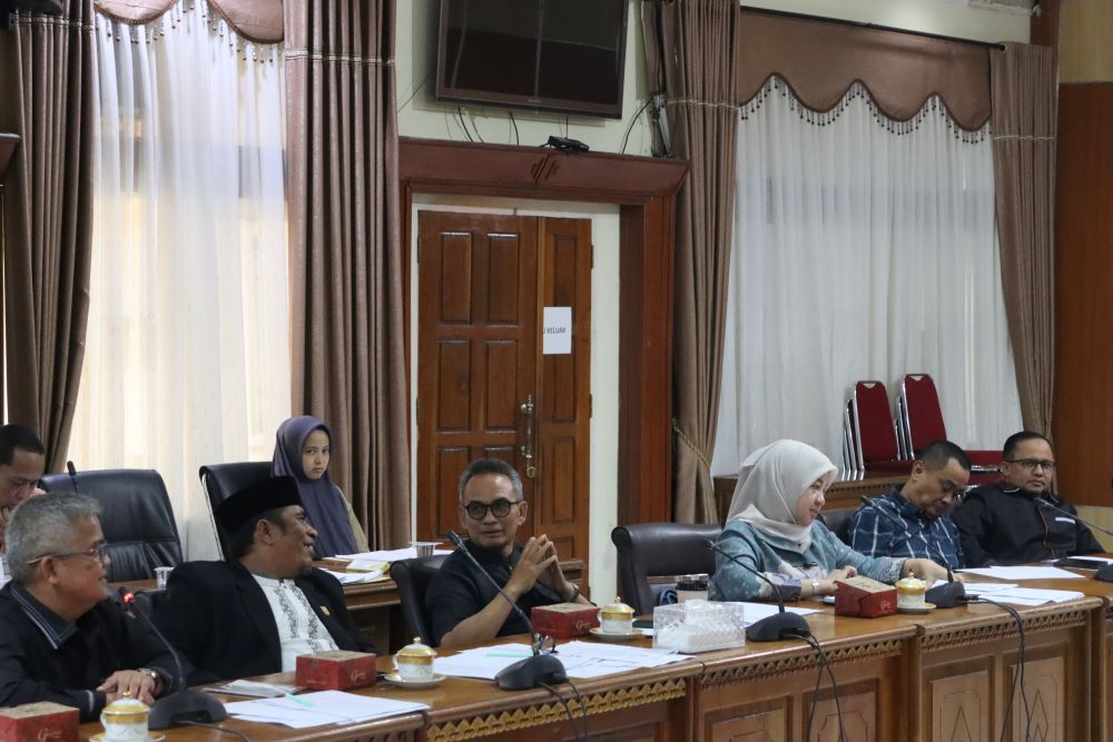 Ketua Komisi 2, Amrizal, A.Md. (Karya Kebangsaan), Wakil Ketua Andi Putra (Nasdem), Zulkhairahmi,S.Ak. (Gerindra), Hj.Elfianis,A.Md. (Demokrat), Dewi Anggraini,S.E., M.M. (PPP-PAN), Nur Hasra,B.Sc. (PKS), Berliana Betris,S.I.P. (Karya Kebangsaan) dan Apt.Linda Wardiyanti,S.Farm. (PKS) didampingi Asisten 2 Kota Bukittinggi melaksanakan Rapat Kerja dengan Kepala SKPD terkait.
