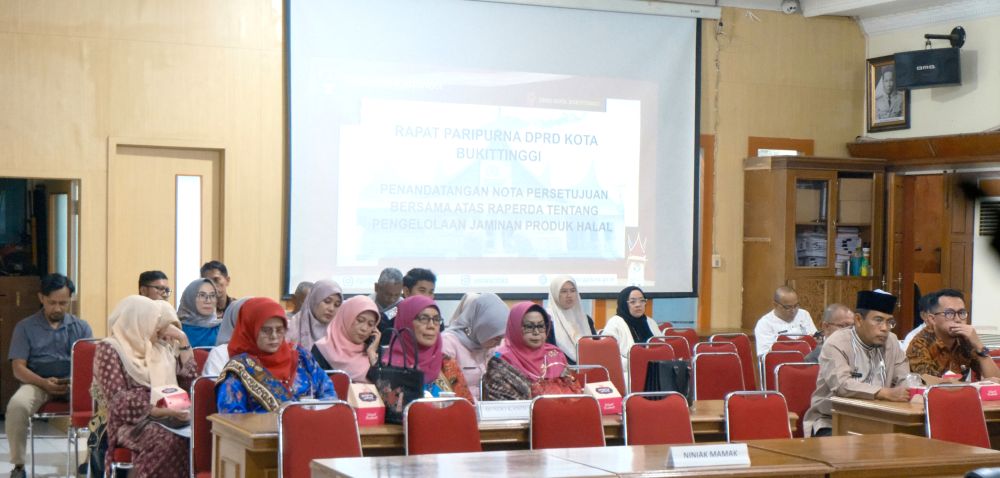 Humas DPRD— DPRD Kota Bukittinggi menggelar Rapat Paripurna dengan agenda Penandatanganan Nota Persetujuan Bersama Atas Rancangan Peraturan Daerah tentang Pengelolaan Jaminan Produk Halal, bertempat di Gedung DPRD Kota Bukittinggi, 12 Desember 2025.