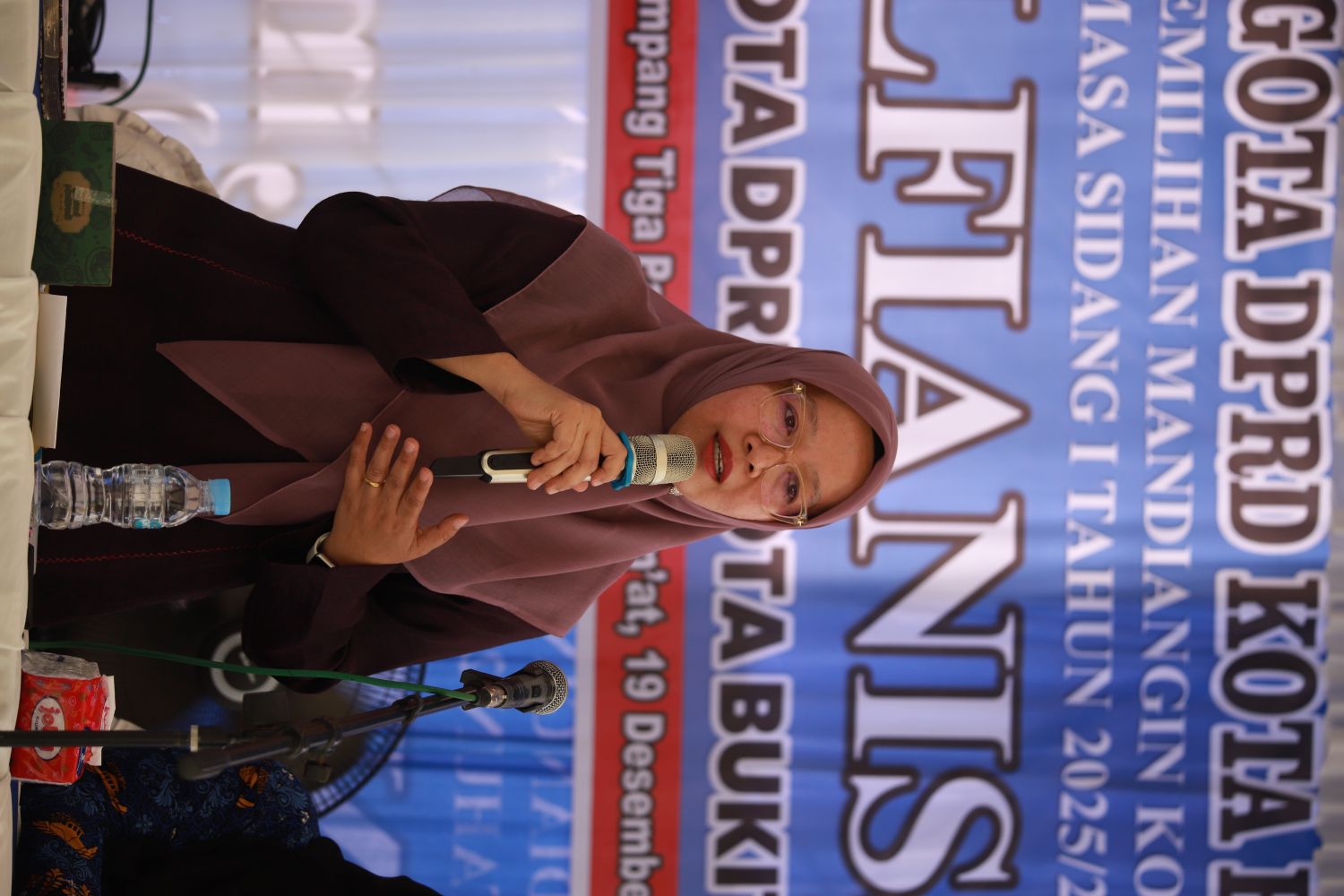 Humas DPRD — Anggota DPRD Kota Bukittinggi Hj. Elfianis, A.Md melaksanakan kegiatan Reses Masa Sidang I Tahun 2025/2026 sebagai wadah menjaring dan menampung aspirasi masyarakat di daerah pemilihannya. Kegiatan reses tersebut bertempat di Simpang tigo Panganak Kelurahan Puhun Pintu Kabun Kecamatan Mandiangin Koto Selayan Kota Bukittinggi, Jumat 19/12-2025