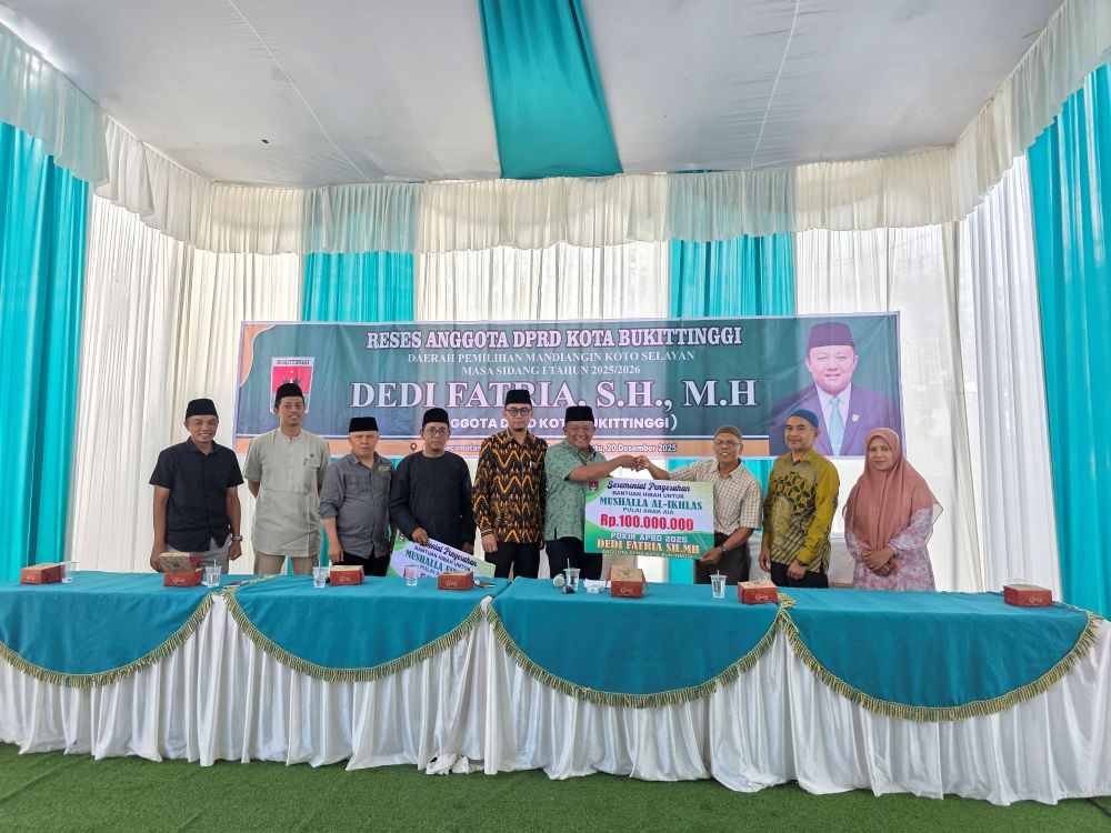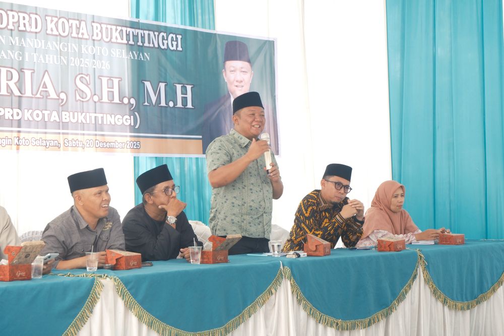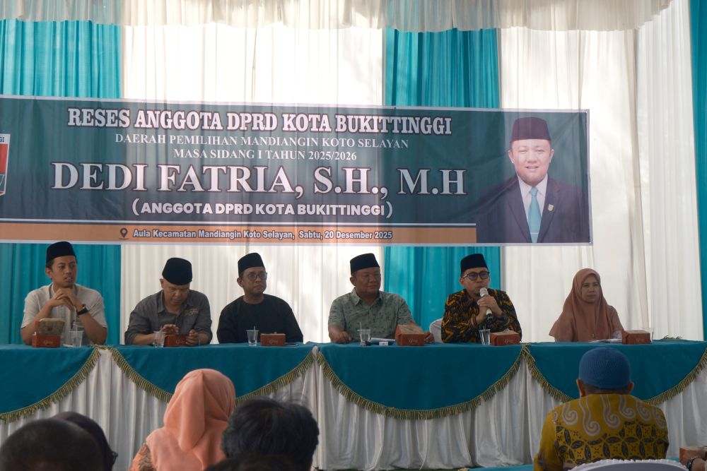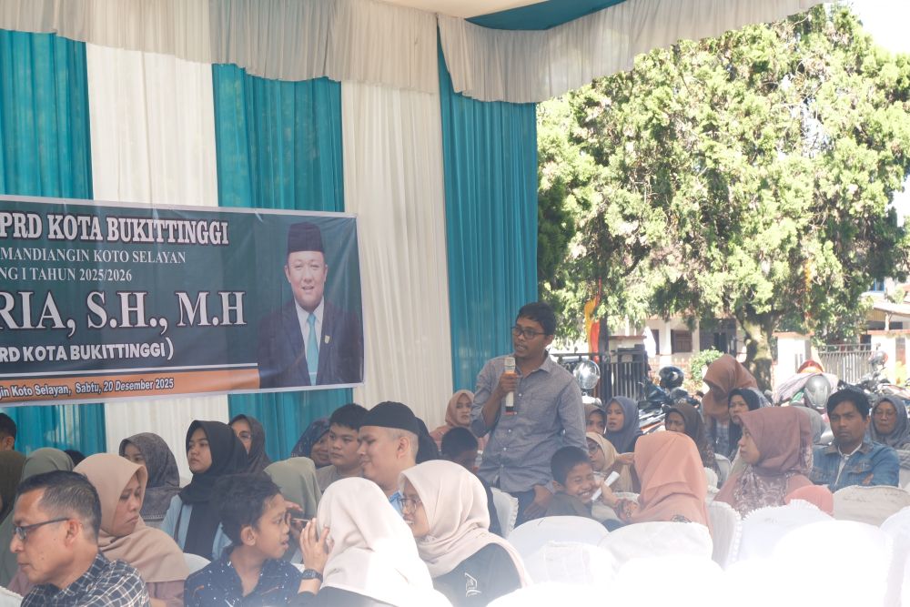 Humas DPRD — Anggota DPRD Kota Bukittinggi, Dedi Fatria, S.H., M.H., melaksanakan Reses Perorangan Masa Sidang I Tahun 2025 di Daerah Pemilihan Mandiangin Koto Selayan (MKS). Kegiatan temu konstituen tersebut berlangsung di Halaman Kantor Camat Mandiangin Koto Selayan, Sabtu (20/12/2025).