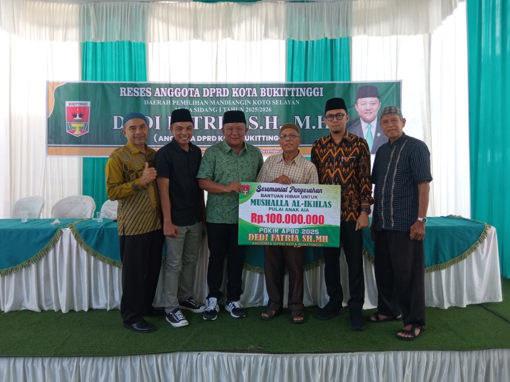 Pada kesempatan tersebut, Dedi Fatria menyerahkan bantuan dana Pokir kepada 20 orang penerima, masing-masing sebesar Rp4 juta per orang setelah dipotong pajak. Selain itu, juga disalurkan bantuan hibah sebesar Rp50 juta untuk Mushala Al Firdaus Manggih Gantiang.