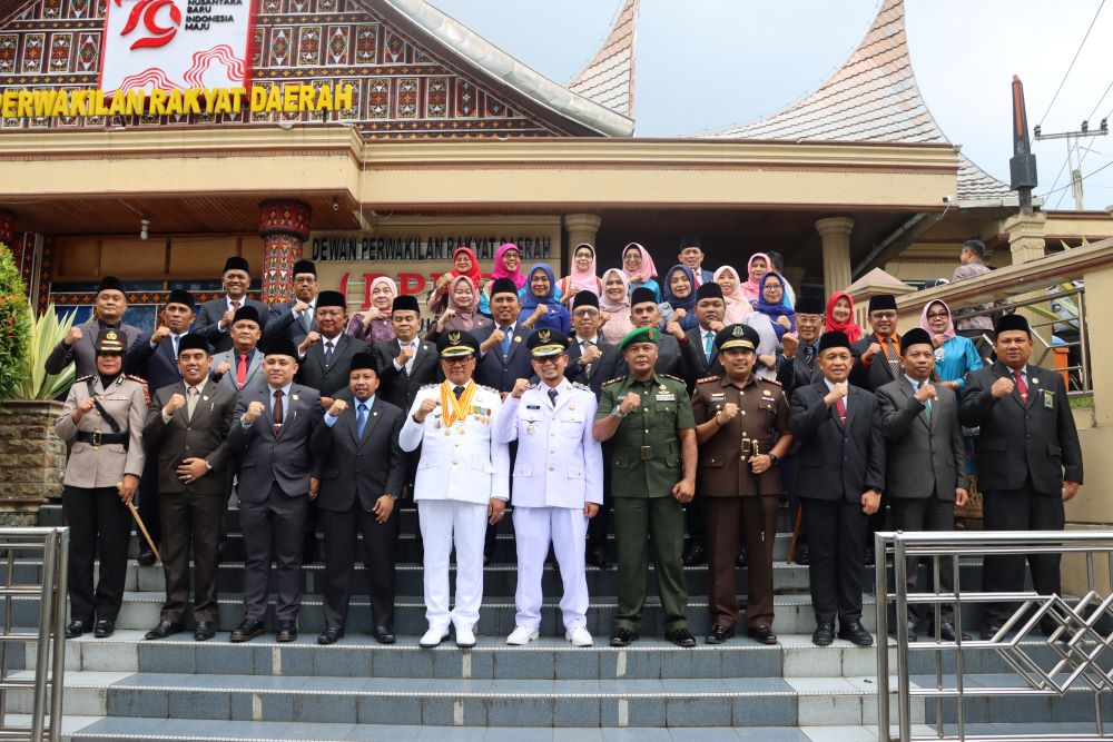 Selesai acara rapat paripurna dengan agenda penyampaian pidato perdana Ramlan Nurmatias Wali Kota Bukittinggi, langsung foto bersama seluruh Anggota DPRD, dan Forkopimda di teras gedung DPRD Kota Bukittinggi.