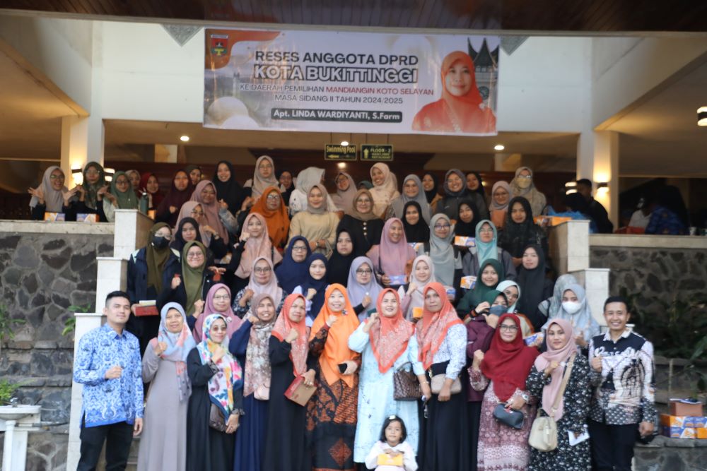 Bukittinggi, DPRD- Anggota DPRD Kota Bukittinggi, Apt. Linda Wardiyanti, S.Farm menyelenggarakan Reses Per orangan Masa Sidang II Tahun 2024-2025, hadir sejumlah Perwakilan Organisasi Perangkat Daerah (OPD) terkait, Tokoh Masyarakat seperti Rio Priadi, Pemuda/Pemudi, Tim Pendamping/dokumentasi Sekretariat DPRD, serta para undangan yang aktif menyampaikan aspirasi, di Aula Hotel Pusako Jum'at (25/4/2025).